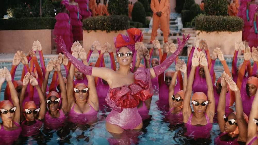 I’ll be the first to admit that when I first listened to The Lion King: The Gift, there were tracks that confused me, seeming very disconnected to The Lion King. Black is King clears up any confusion, showing what a spectacular artistic vision the album really was. It reinterprets the themes and story of The Lion King through a modern human lens, celebrating African culture and its influence on Black culture in America in particular. An image from the film that reaffirms this theme is a shot where the American flag is shown with African flag colors.