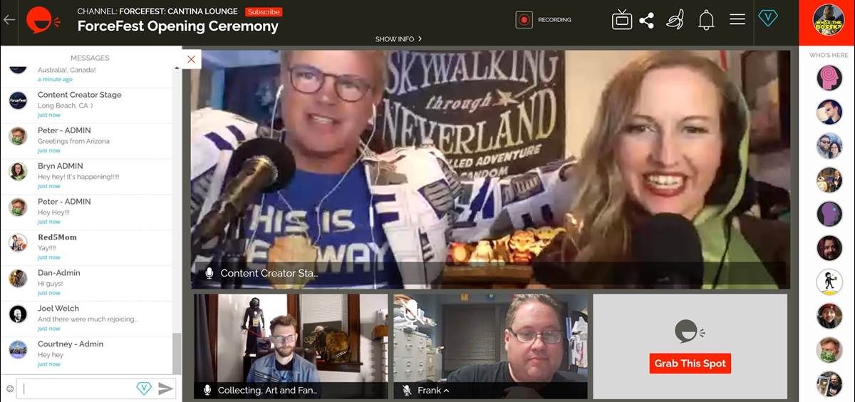 ForceFest 2020 launched Friday evening with an introductory Opening Ceremony hosted by Skywalking Through Neverland’s Richard and Sarah Woloski with appearances by the event’s other organizers and contributors, plus some fun trivia contests and a preview of what virtual attendees would experience over the following two days.