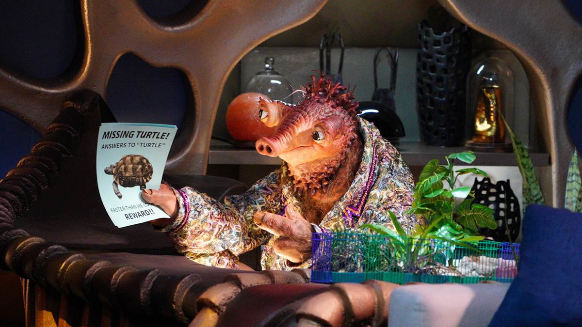 Even the puppet of Ned has his own evolution that can be tracked through past Henson productions, as Brian Henson shared. “Ned as a puppet is a further development of Pilot from Farscape and Pilot was a further development of Richfield from Dinosaurs. So it started on Dinosaurs, this idea of making a really big animatronic puppet, which allows you to do more inside the faces. But the only way you can do it is if you can come up with a reason why the character can never move because now it’s got so much structure underneath it and people underneath it that it can’t walk around. So all three of those characters, Richfield and then Pilot and now Ned, we had to come up with a justification of why they never moved. I think we are reserving the right to explain why Ned never moves so we all have our theories, but we haven’t committed to anything yet on the show.”