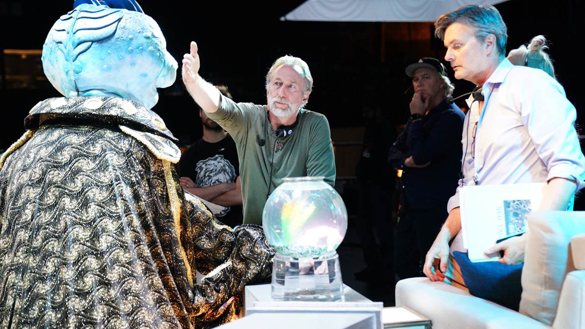 A talk show only works if an interesting host has engaging guests and the conversation can flow naturally, but Ned is a large, highly complicated animatronic puppet that takes six people to operate. “Traditionally in our company, we’ve typically said if you have more than two puppeteers on a puppet they can’t improvise,” Brian Henson explained about achieving the impossible on this project. “You can’t get the puppeteers to be able to gel. At that point, you have to be strictly script-bound so you can rehearse and rehearse and rehearse. So definitely six puppeteers on one character improvising, I think we said to Disney ‘Yes, it’s going to be fantastic, of course we’ve done it before.’ We didn’t know how and it was really hard for the first couple of weeks for the performers. And then once they gelled, it worked really well.”