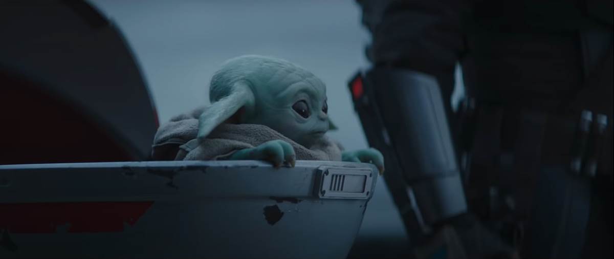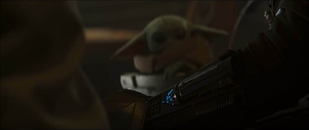 SHOT 17: Still in his hovering pram, the Child looks up at Mando again. Mostly this trailer is filled with a lot of pregnant pauses.