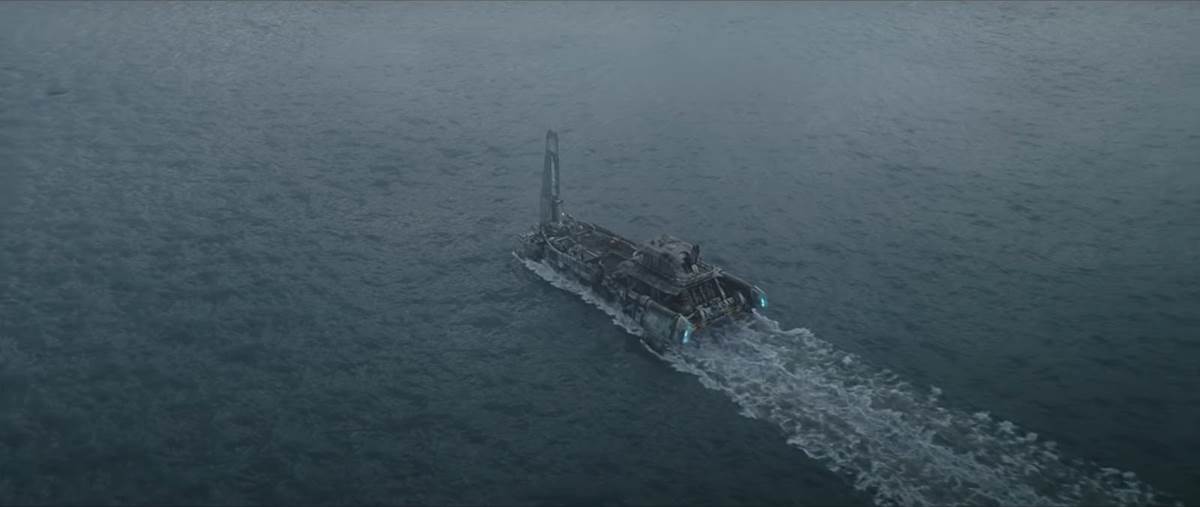 SHOT 15: A boat! We don’t see a tremendous amount of boats in Star Wars, so that’s cool. I’m going to assume this is still on Mon Cala. This boat is making it way through open waters, leaving a wake behind it.
