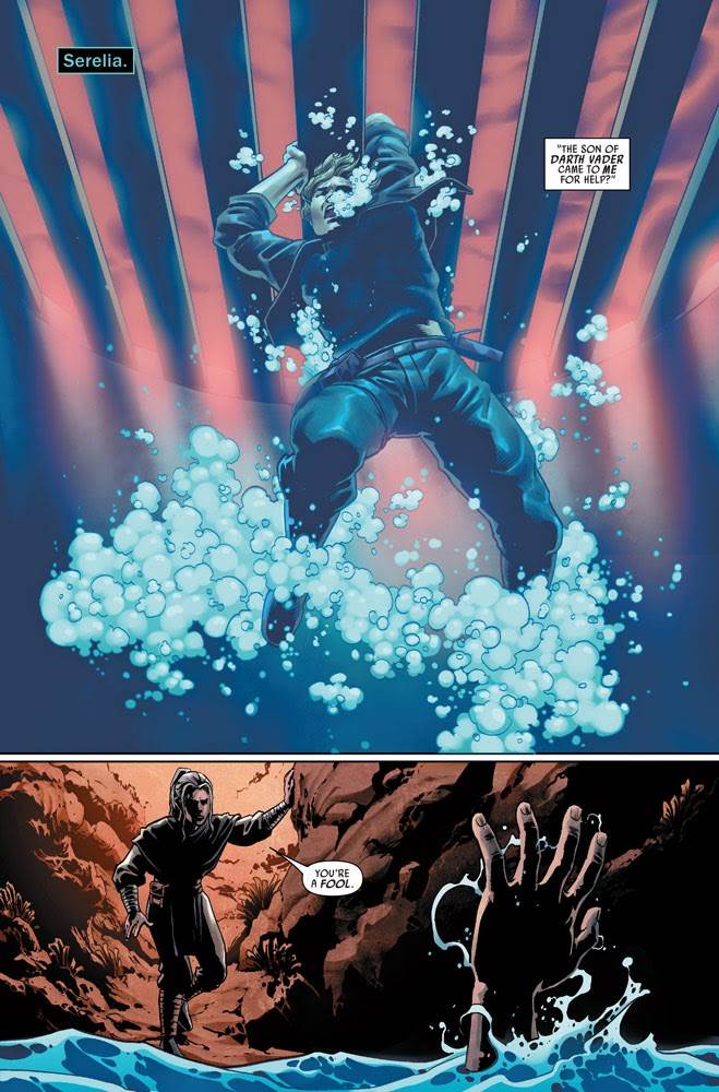 We pick up where issue #5 left off, with Luke Skywalker in trouble on the planet Serelia, where he’s tracked down the woman from his recent visions-- namely the Force-sensitive ex-Jedi Padawan Verla (first introduced in Soule’s also-excellent Star Wars: Darth Vader - Dark Lord of the Sith).
