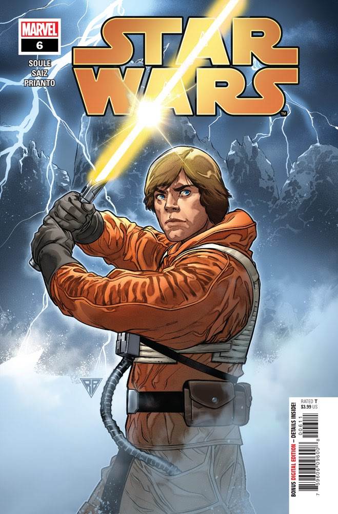 In another tease of Lucasfilm’s upcoming multi-platform publishing initiative The High Republic, Luke travels to the Outer Rim planet of Tempes based on information hesitantly provided to him by Verla, where he enters a seemingly abandoned Jedi storage facility-- and encounters a spectral visage of another familiar face from Star Wars’ past. I won’t spoil who exactly that is in this review, but suffice it to say that Luke doesn’t come by his new lightsaber too easily. We also get a cameo appearance by a certain Dark Lord of the Sith and the recently introduced Commander Zahra, and this issue ends with one of my favorite comic-book splash pages in a long time-- it’s an image that inspires a lot of hope for both the Rebel Alliance and this run of Star Wars comic books. As always, I can’t wait to see what Charles Soule and his fantastic collaborator-- artist Jesus Saiz-- are cooking up for further arcs.