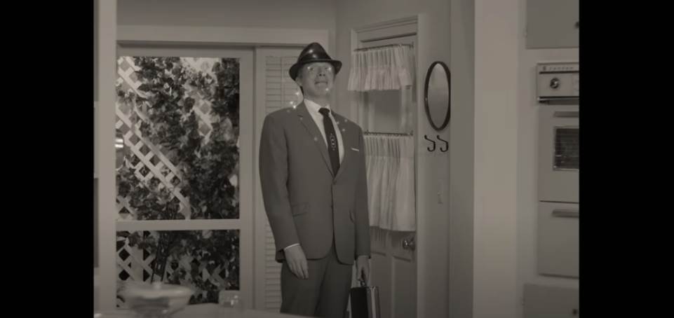 As we get a few shots of the newlyweds in their 50s home and clothing, we hear Vision saying “Wanda and Vision, aren’t we a fine pair.”