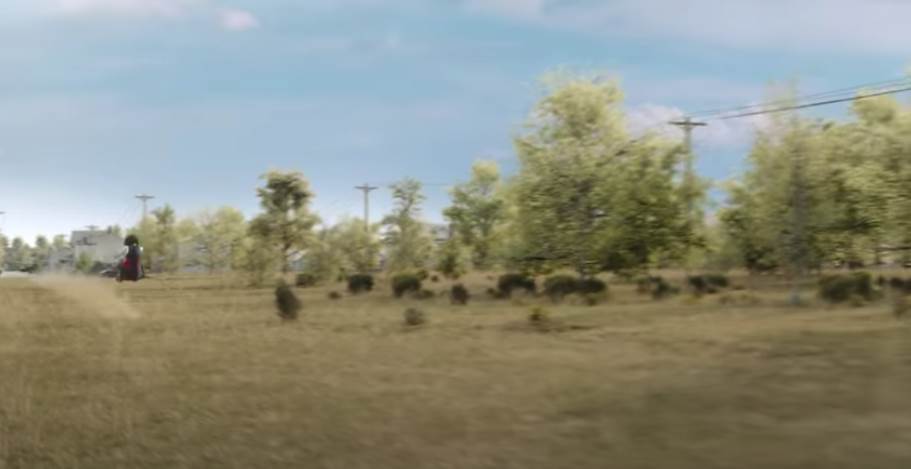 We then get a few shots of a person flying through the air, seemingly after being thrown by Wanda as her signature red mystic remnants appear on the body. We the person seems to be thrown into another dimension, as the first shot sees them during the day, they hit some sort of wormhole-type-thing and they land in a new location at night.