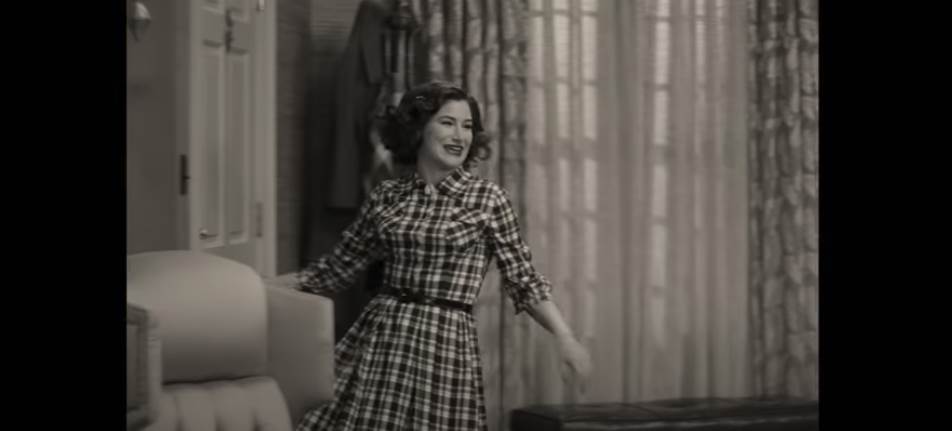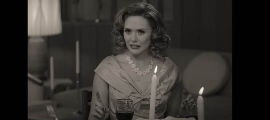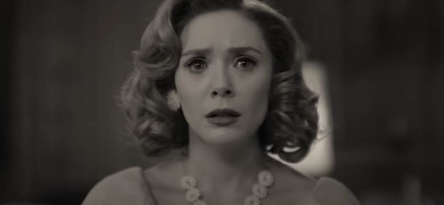 The aspect ratio of the trailer slowly transitions and the next shot fades from black and white to color while Wanda asks “Is this really happening?”