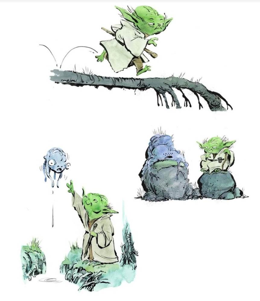 I think kids will be instantly drawn into the world of Star Wars (and Dagobah specifically) through the pages of this book, whether they’ve already seen Empire or not-- and certainly reading this book or having it read to them will make them anxious to see Yoda and Luke’s training come to life on the screen. That lovable droid R2-D2 also plays a role in this story, as he does in the movie, and I found it pleasantly surprising to see flashbacks to Clone Wars-era Jedi battles with villains such as Jango Fett, Trade Federation Battle Droids, and General Grievous. Plus, Chhibber and Deas take the extra step by inventing some new unnamed creatures to populate Dagobah’s marshlands, and it’s fun to see Yoda and Luke interact with them during their training. These elements are all likely to help the individual moments of the book feel varied enough to remain interesting for younger and older readers alike.