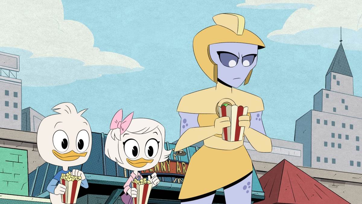 The current reboot of DuckTales on Disney XD is commendable not only for its ability to pull off exciting, funny stand-alone adventures, but also for its commitment to continuity. Case in point: last season’s overarching plot ended with an ultimately unsuccessful invasion of the Earth by Moon people, and after that story arc ended in the finale, a lesser show would have forgotten or at the very least deemed it unnecessary to follow-up on some kind of aftermath.