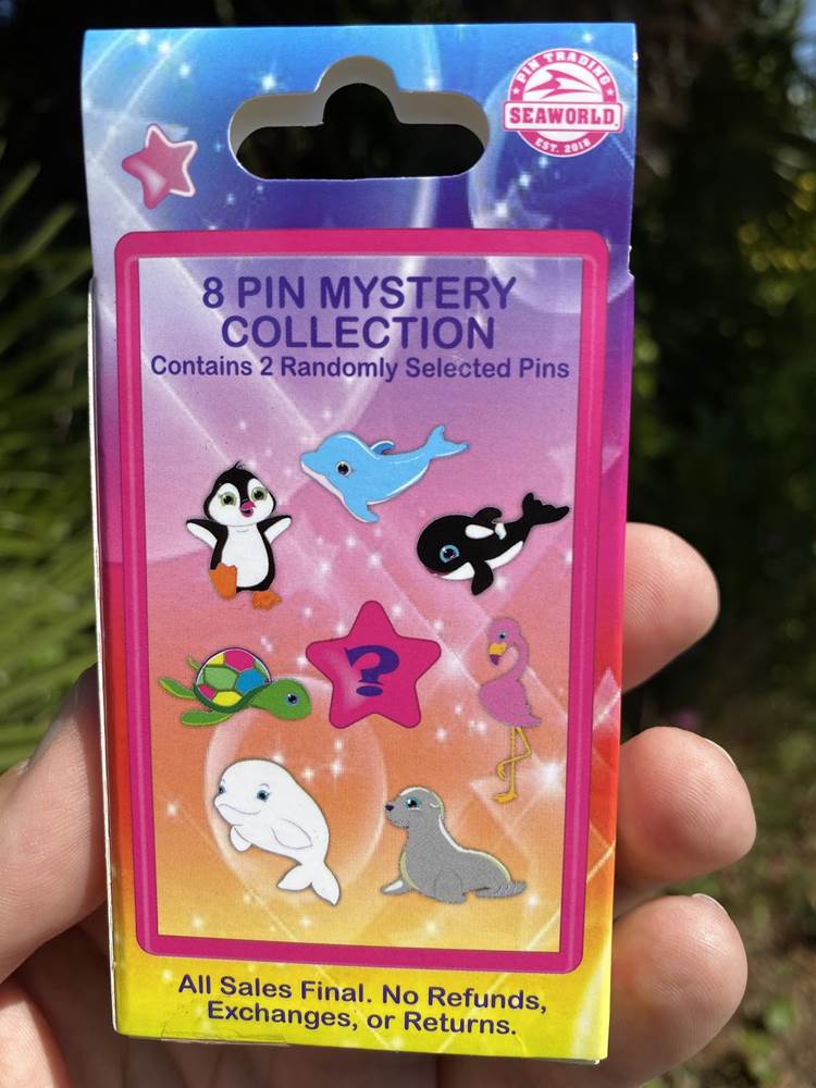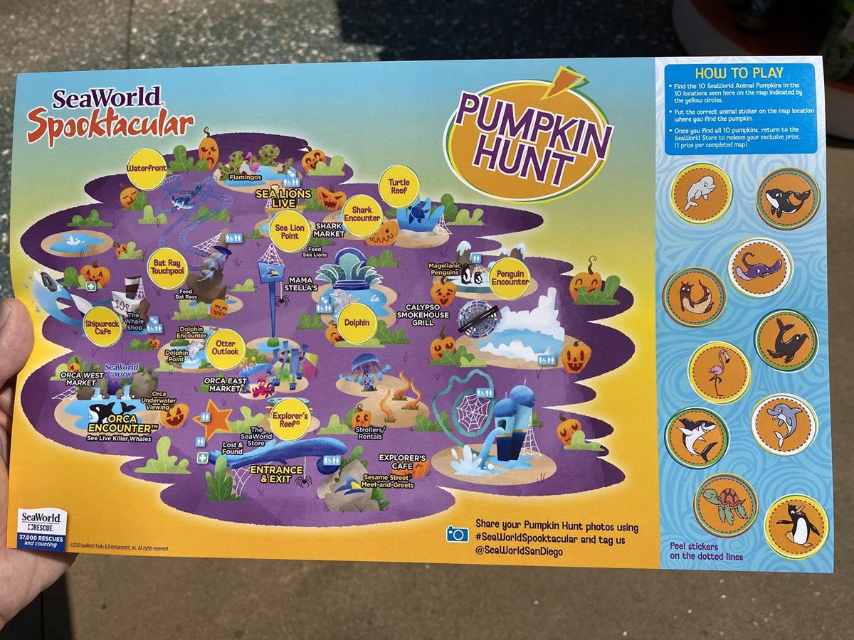 The biggest highlight of SeaWorld’s Halloween Spooktacular for us was the Pumpkin Hunt scavenger hunt around the park. It cost $12 to participate in the activity, which encourages guests to follow a map around the park searching for pumpkins painted with images of sea life. As a reward for completing the map by applying the correct stickers corresponding with which animal was on each hidden pumpkin, we received a two-pack of SeaWorld Rainbow Waters mystery pins-- ours contained a cute penguin and turtle!