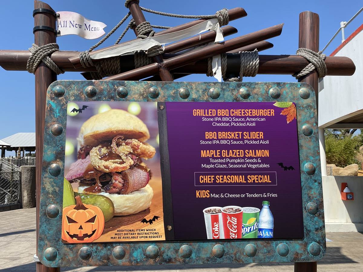 When it comes to specialty holiday foods, there wasn’t too much to speak of during the Halloween Spooktacular, though we did see a colorfully themed menu at the Shipwreck Reef Cafe and some unique upside-down beers celebrating the scariest time of year.