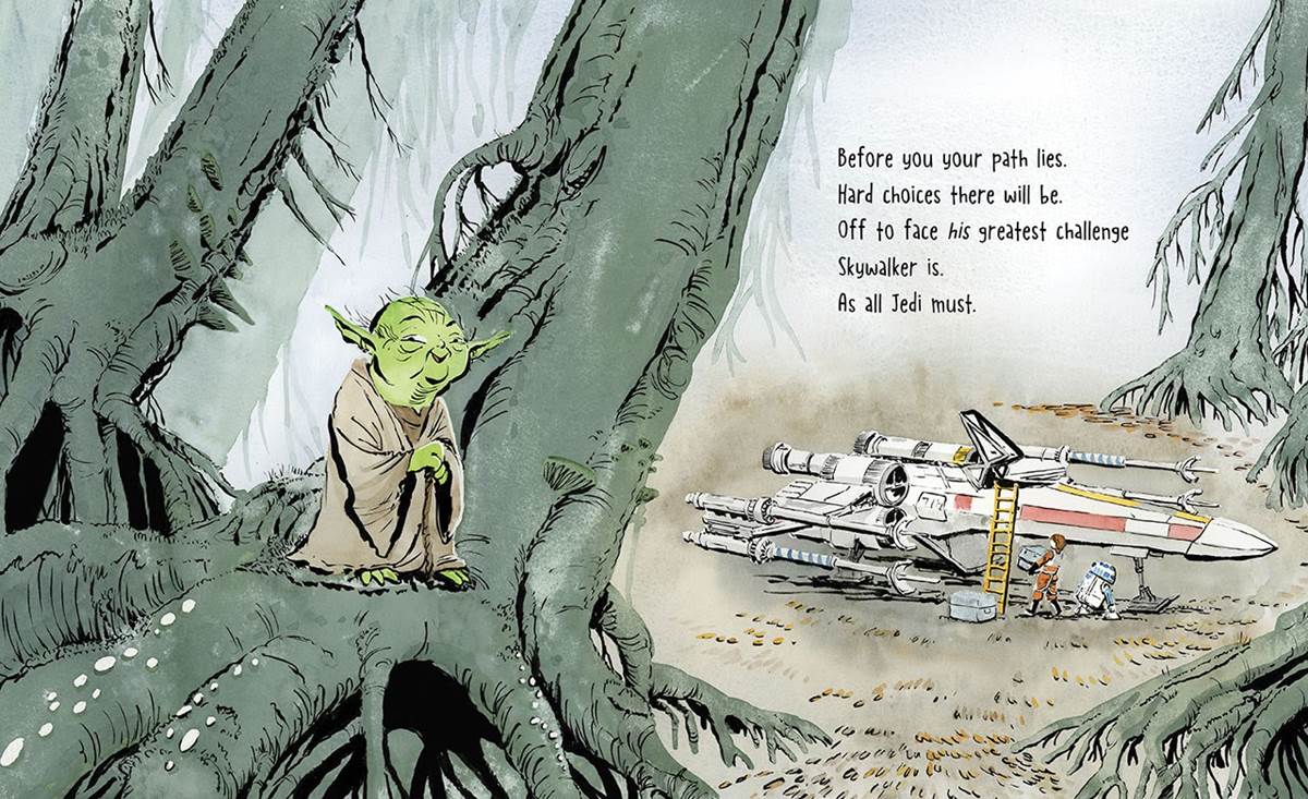 Chhibber: I think for kids, part of what’s so wonderful about this book is Mike Deas’s illustrations, and what an incredible job he did in bringing to life-- in this very comforting way-- what can be quite scary when you’re very little. In the films, it’s very dark and there are these harsh contrasts between the light and the dark. So what Mike Deas did was bring it down to a very soft, inviting place with his colors and his expressions that he’s given to Yoda and to Luke, and to R2, even. I think because in its core it’s about teaching and it’s about aspiration, that’s what’s so exciting for little kids about this. It’s literally in the title: A Jedi You Will Be.