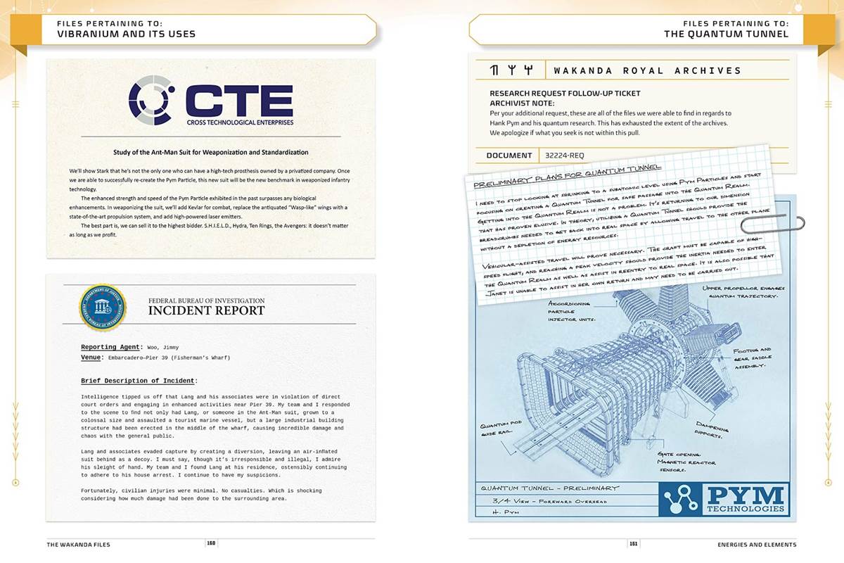 And that’s not even the coolest part of this new book. You may have noticed in the first image that The Wakanda Files comes with an interesting accessory. The kimoyo beads attached to the book itself feature a UV light that reveals secret messages throughout the book! That’s right. You actually have to find secret messages from the War Dogs for more information about the MCU.