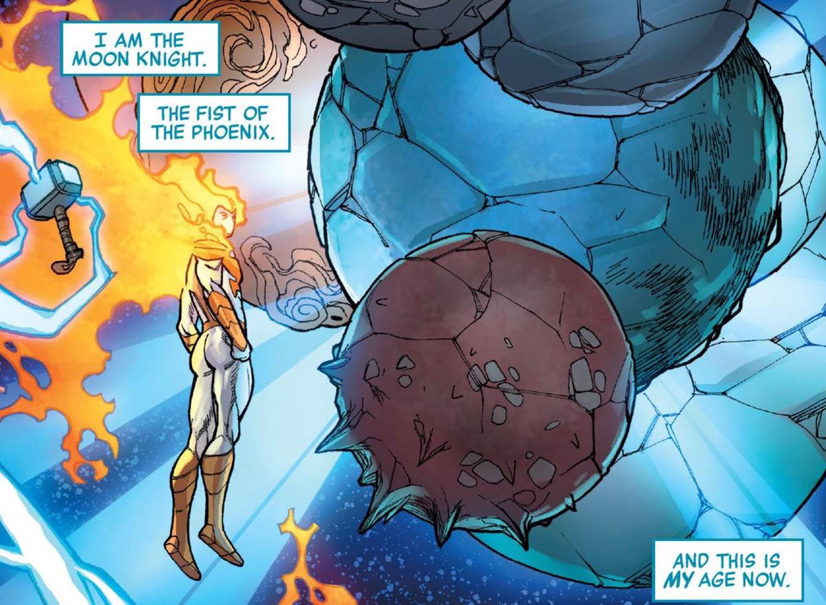 While we get these events from Moon Knight’s perspective, this issue barely scratches the surface of the character. This finale was set up for a potentially huge moment, with Moon Knight acquiring the the Phoenix Force at the end of the last issue. Unfortunately, that moment doesn’t pay off in a meaningful way as Moon Knight doesn’t do much with the power in this issue.