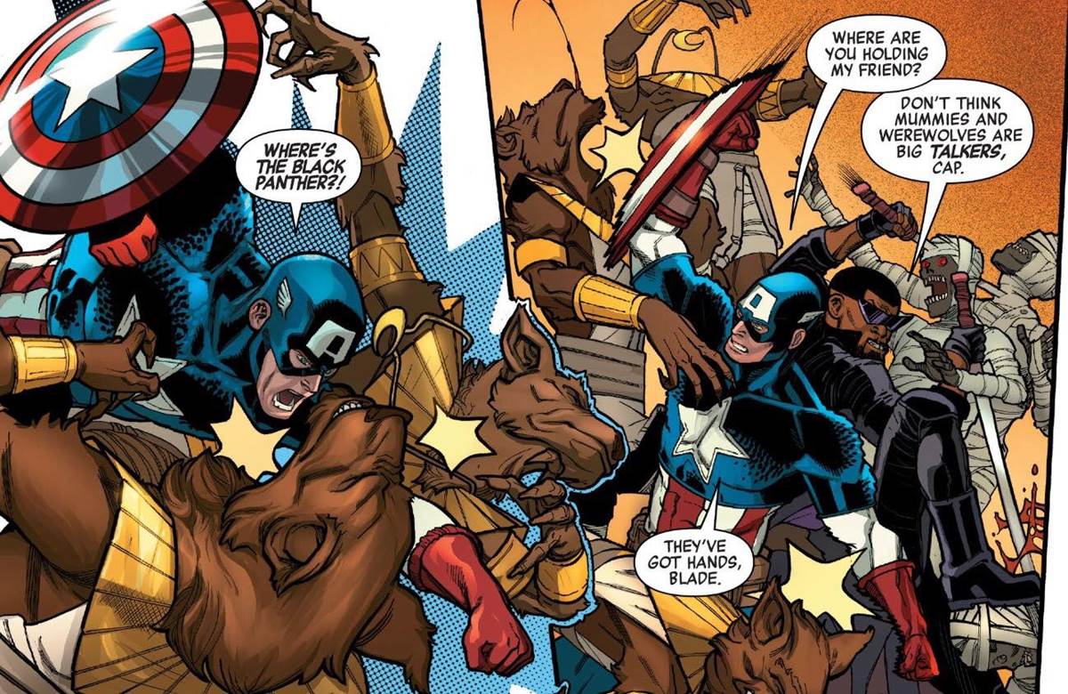 “Avengers #37” certainly features a great deal of entertaining and epic moments. For instance, we do get to see Captain America take on an army of mummies and werewolves. We also get to see Blade and She-Hulk take on the powers of two other great characters. The only problem is, those moments don’t get much of a follow up and are sure to leave readers wanting more.