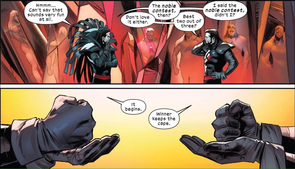 In one of this week’s tie-ins to the ongoing “X of Swords” X-Men story arc, Mister Sinister leads (if you can call it that) his team on a mission to end the deadly tournament before it starts. However, rather than embark on the mission himself, he enlists one of his clones to go for him. The clone is not so excited about the dangerous mission.