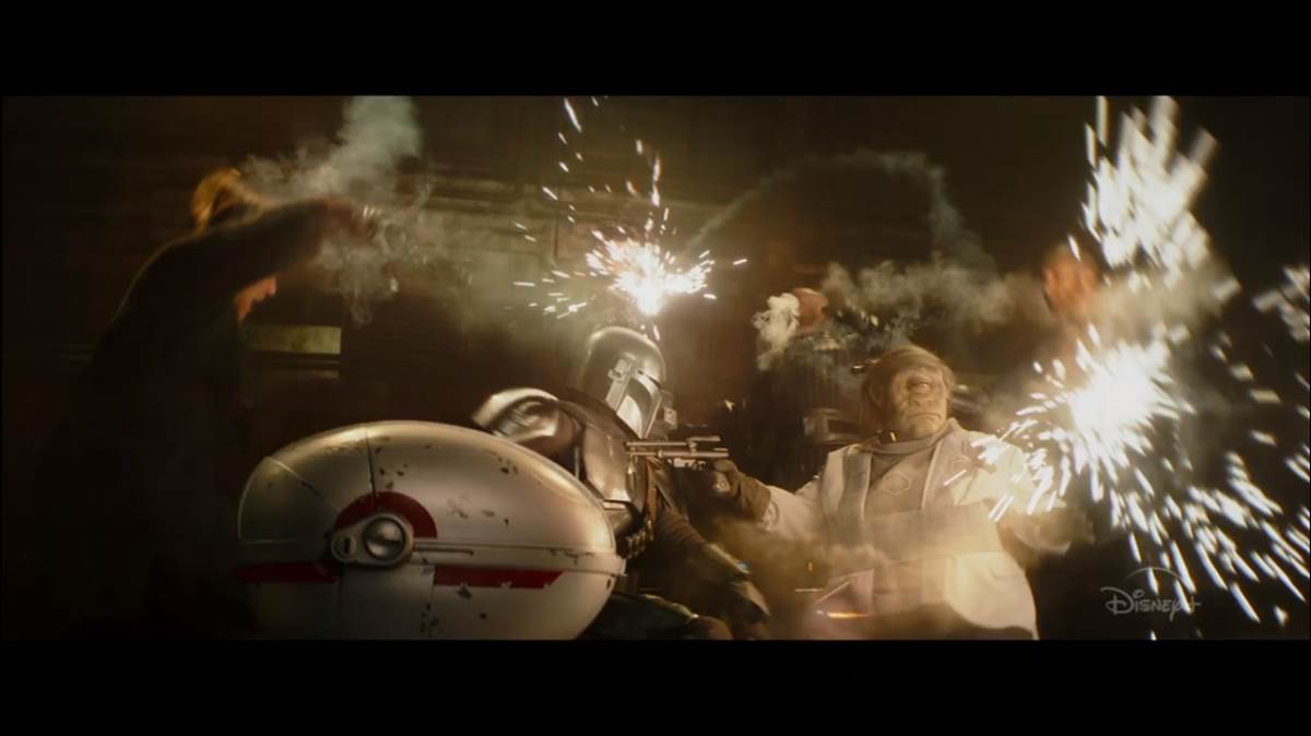 This is a different angle of a shot we saw in the previous trailer, of the Abyssin’s goons all pointing their blaster’s at Mando’s head.