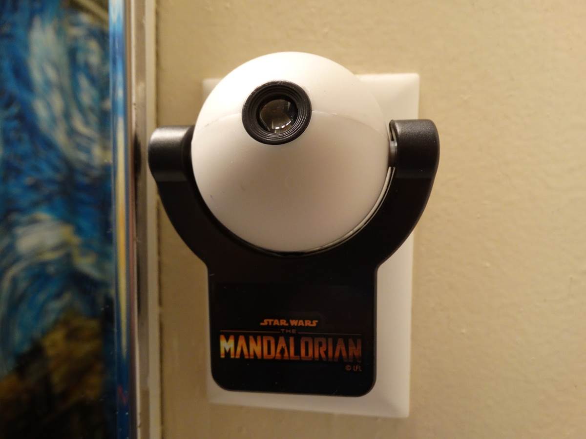 Secondly, there’s the Projectables Star Wars The Mandalorian Plug-In Light Sensing LED Night Light ($9.99, just slightly more expensive but still worth every penny for what you get) that projects a circular image of the Mandalorian and The Child walking through the desert on the opposite side wall. Djarin is wearing his armor from the first couple episodes of season one, and Baby Yoda is floating in his familiar hovering pram. I suspect this image will be a comforting one for kids who are familiar with these characters.