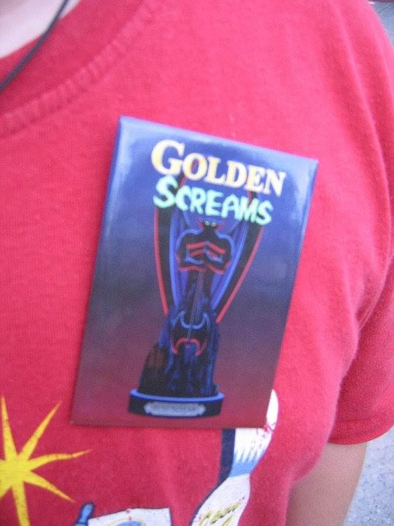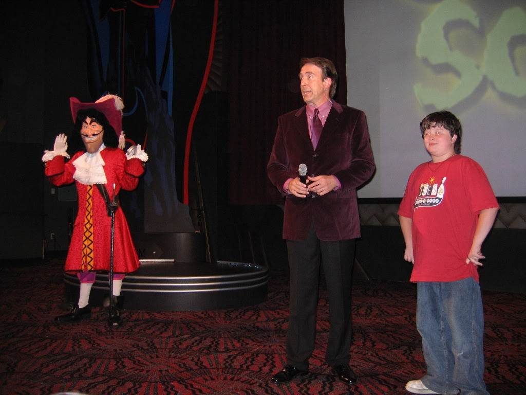Golden Screams is an "award show" for the best scream from a classic Disney Villain. It performs five times a day in the Golden Dreams theater. Guests are seated, and then meet host Upton O'Good. He introduces a medley of film clips of Disney villains, then narrows the nominees to six: Queen of Hearts, Captain Hook, Stromboli, Madame Medusa, the old hag, and Maleficent. The audience votes on their favorite, and the Magic Mirror tabulates the results. Surprise! A new scream has been heard from, and a child from the audience is declared the winner. As the child is brought to the front of the theater, Captain Hook enters to protest. But the Magic Mirror's judgement prevails, and the child is declared an honorary villain and presented with an exclusive "Golden Screams" button.