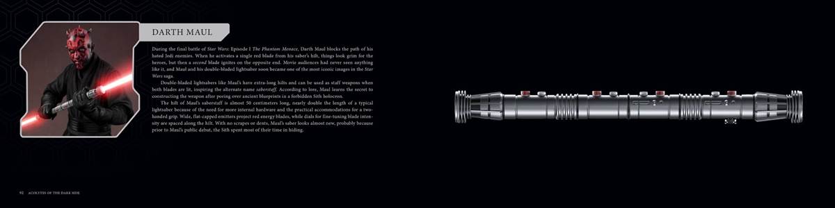 Wallace: Yeah, that was really the secret sauce of this. I don’t think that the most interesting part of this book is my writing; I think the most interesting or compelling part of this book is the renderings of these lightsaber hilts. The artists who worked on this book just brought it home and nailed that aspect of it. The biggest thing is you have movie props, basically, where you literally have an object that was built and designed in the real world to be seen on-screen. Then you have animation, where you have some sort of CG-type asset that was created for them. Then you have video games, where you probably have some of that-- there’s a little bit of variation. And we even comic book designs in this book, where maybe you have something to go on, but probably not much. You might only have one view; you can’t do a 3D turnaround.
