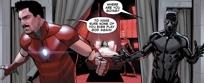 Those questions explode to the surface when Captain Marvel tries to use this ability to stop Thanos from potentially acquiring a cosmic cube. She had the best intentions, but the result is disastrous as one of Tony Stark’s friends is killed in the battle. When Tony learns that this death occurred in a fight that didn’t need to happen, he… well, he goes full Tony Stark.