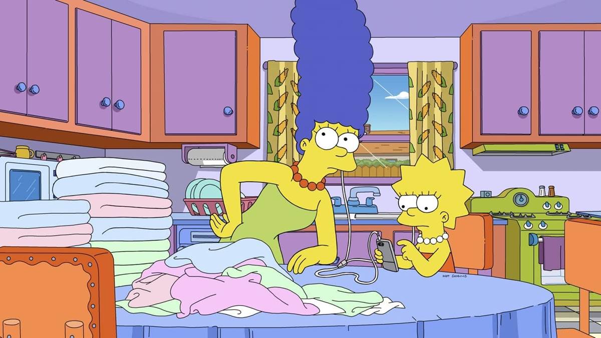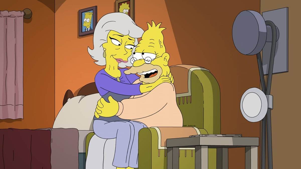 Lia wakes up the next day to find that Marge has now become addicted to the podcasts. Cut to mother and daughter folding laundry together while sharing earbuds and discussing their mutual obsession between pauses and plays. “How could a woman with four PhDs be so dumb?” Homer and Bart (Nancy Cartwright) say it’s time to visit Grampa (Castellaneta again), but Marge and Lisa decide to see a live taping of their favorite podcast instead. At the Springfield Retirement Castle, Homer and Bart find Grampa making out with his new girlfriend, Vivienne St. Charmaine (guest star Morgan Fairchild of Falcon Crest fame). “Hey, you look familiar. Didn’t you used to be younger?” It seems Vivienne is a former soap opera actress, and has now fallen for Abe Simpson, to the point where they have couples colonoscopies.