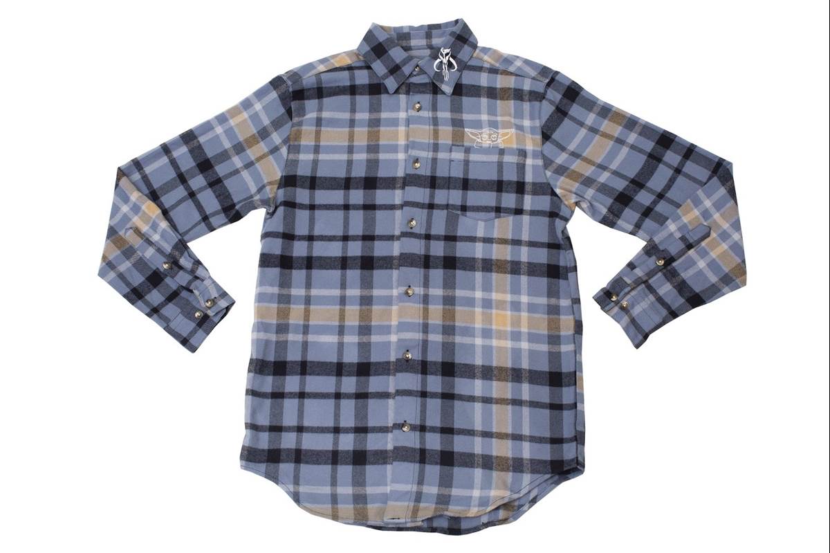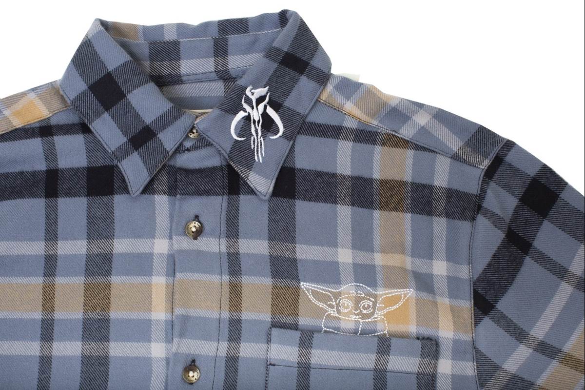 “Follow the way of the Mandalore in true Cakeworthy style with this signature flannel quoting the noble mantra of the warrior tribe, and while keeping the Child snug in your top pocket!”