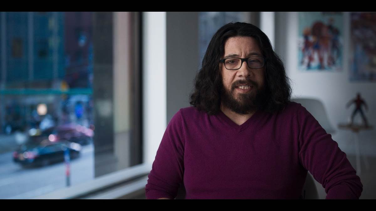 Next, we meet artists Javier Garron. He talks a bit about his childhood and how he read Disney comic books growing up. He tells a story of his father buying him a superhero comic when he was young and refers to this moment as “the beginning of the end.”