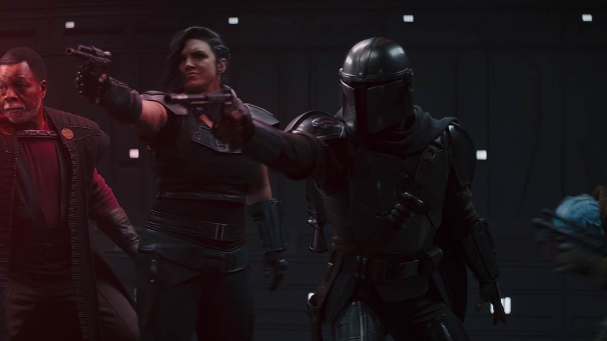 Limping through space after the events of the past few episodes have left the Razor Crest in shambles, Mando (played by Pedro Pascal) attempts to enlist The Child’s help in repairing the ship, with predictably amusing results. Our hero realizes he and his companion are not going to make it to Corvus to meet with Ahsoka Tano in their current condition, so he decides to make a pit stop back on Nevarro, where former Rebel Alliance shock trooper Cara Dune (Gina Carano) has been cleaning up the main settlement by taking out local Aqualish thugs.