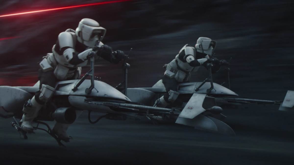 Inside, after deactivating the base’s reactor, they surprisingly find more than they were expecting, in the form of answers to questions posed very early in the series, such as “Why does Moff Gideon want the Child?” and “What exactly does Dr. Pershing’s (Omid Abtahi) work entail?” There’s even an offhand reference to midi-chlorians-- the first one in live-action Star Wars since the prequels. This installment also puts in some effort in further bridging the gap between the events of Return of the Jedi and the recently completed Star Wars sequel trilogy, in that it sets up the Imperial remnant’s ongoing efforts to both retake the galaxy and revive its currently deceased leader (not to put too fine a point on it). Beyond all that, there’s quite a bit of white-knuckle action going on here as well, as The Mandalorian’s supporting characters take center stage in their efforts to combat and eventually outrun the contingent of stormtroopers now on their tail in the wake of their headquarters’ destruction.