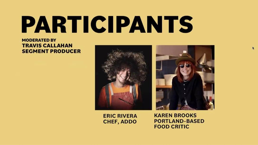 From the series premiere, “Dining Alone in the Pacific Northwest,” Eric Rivera, chef of Addo, was joined by Portland-based Food Critic Karen Brooks to talk about how they’ve been since the episode was filmed. At Addo, the restaurant has innovated by taking some of the events and making them virtual where participants can pick up their meal and connect on screens. Karen has avoided indoor dining during the pandemic, but has found some unique experiences for pickup, like Gado Gado, which sends drivers through a tent with a disco ball to give them unique ambience in a safe way.