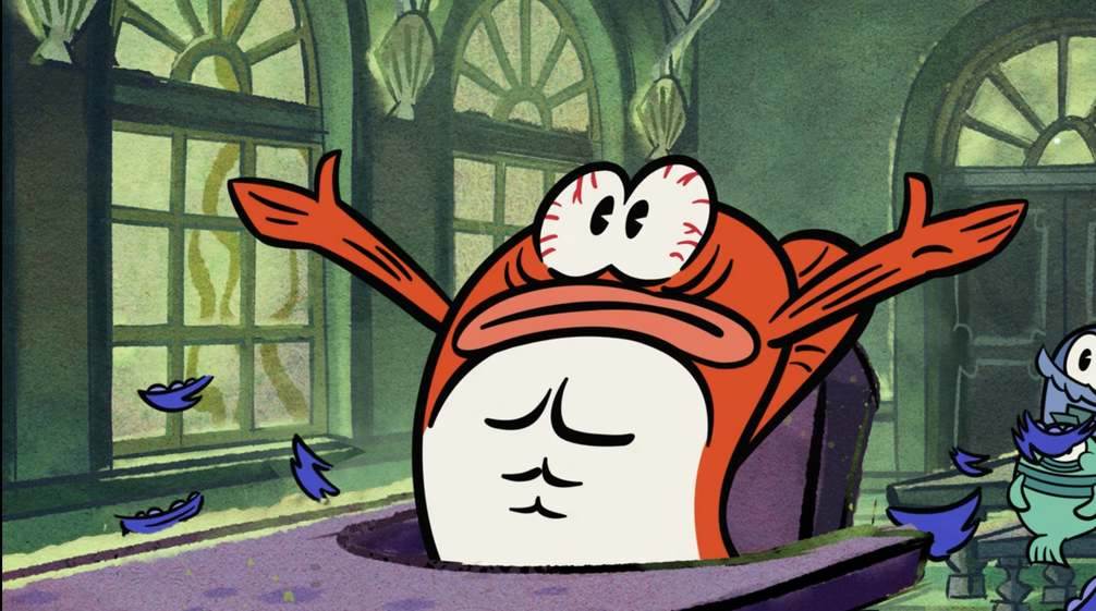 Is Mickey’s “Gubble wubbles ready for some fishy num nums?” Absolutely not. My favorite gag in the short is the hairnet Mickey wears on the outside of his fishbowl helmet.