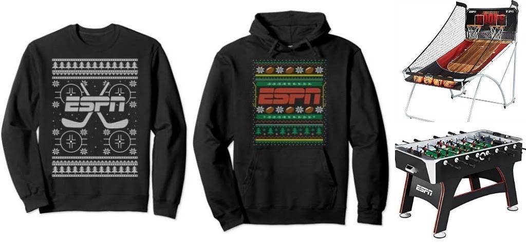 This winter several major league sports are featured on ESPN’s new line of ‘ugly sweater’ shirts and sweatshirts so that fans can fully embrace tacky holiday fashion. Plus check out the ESPN branded game tables like Foosball and Air Hockey all available now through Amazon.