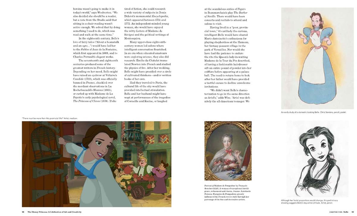 While some examples of these categories were discussed above, the role that context and visual inspiration plays is wonderfully expressed. Solomon draws parallels so beautifully in his descriptions of what the artists sought to achieve in creating individuality and an overall mood for each princess. He also extrapolates the stories and settings to give the reader a fuller picture of the characters and their circumstances. For example: