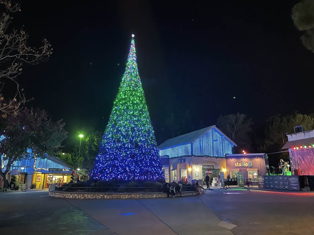 Once the sun sets, the park really comes alive in a spectacular way. The main entrance plaza is where you’ll find the tallest Christmas tree in the park, with LED lights on the surrounding buildings. It brought back memories of the Osborne Spectacle of Dancing Lights at Walt Disney World as the colors change and dance to Christmas music. From classics by Frank Sinatra and Darlene Love to more contemporary bops by Britney Spears and Mariah Carey, there’s plenty of space for families to spread out and enjoy the continuous shows.