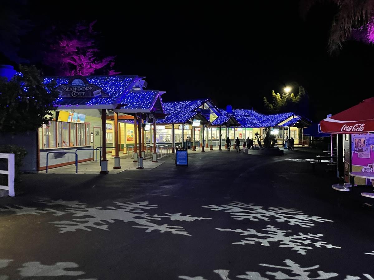 Leading up to the week of Christmas, the park is open Fridays, Saturdays and Sundays from 2:00 pm to 8:00 pm, with sunset starting in the 5:00 hour (Available days expand to week-long operation the week of Christmas and New Years with the exception of Christmas Day). Among the entertainment offerings ahead of nightfall are three animal shows and the opportunity to get a photo with a penguin. On the day of our visit, penguin photos were wrapped up by 3:00 and we didn’t get there in time, but it looks like a lot of fun.
