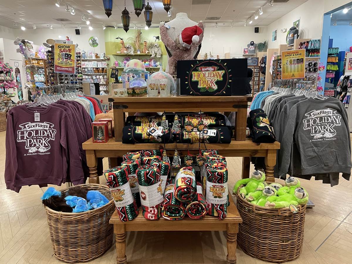 The typical Six Flags shopping options are available with licensed characters from Looney Tunes and DC Comics, but the park also offers exclusive holiday merchandise including blankets, sweatshirts and drinkware. Sweet treats are also available for purchase, including homemade holiday fudge.