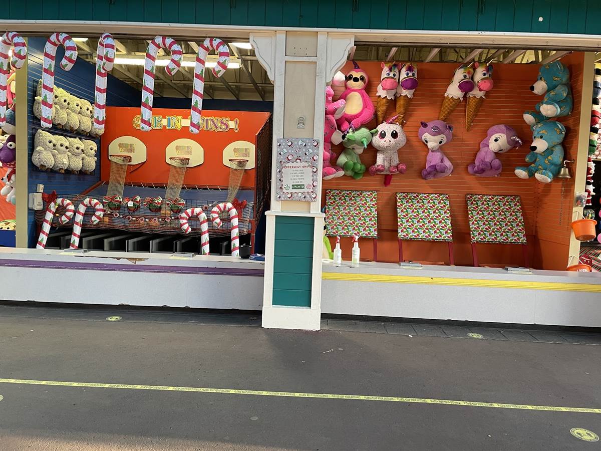 All of the midway games have been themed to the holidays, some of which have a guaranteed prize like picking an ornament off a tree and opening it to see which size prize you won.