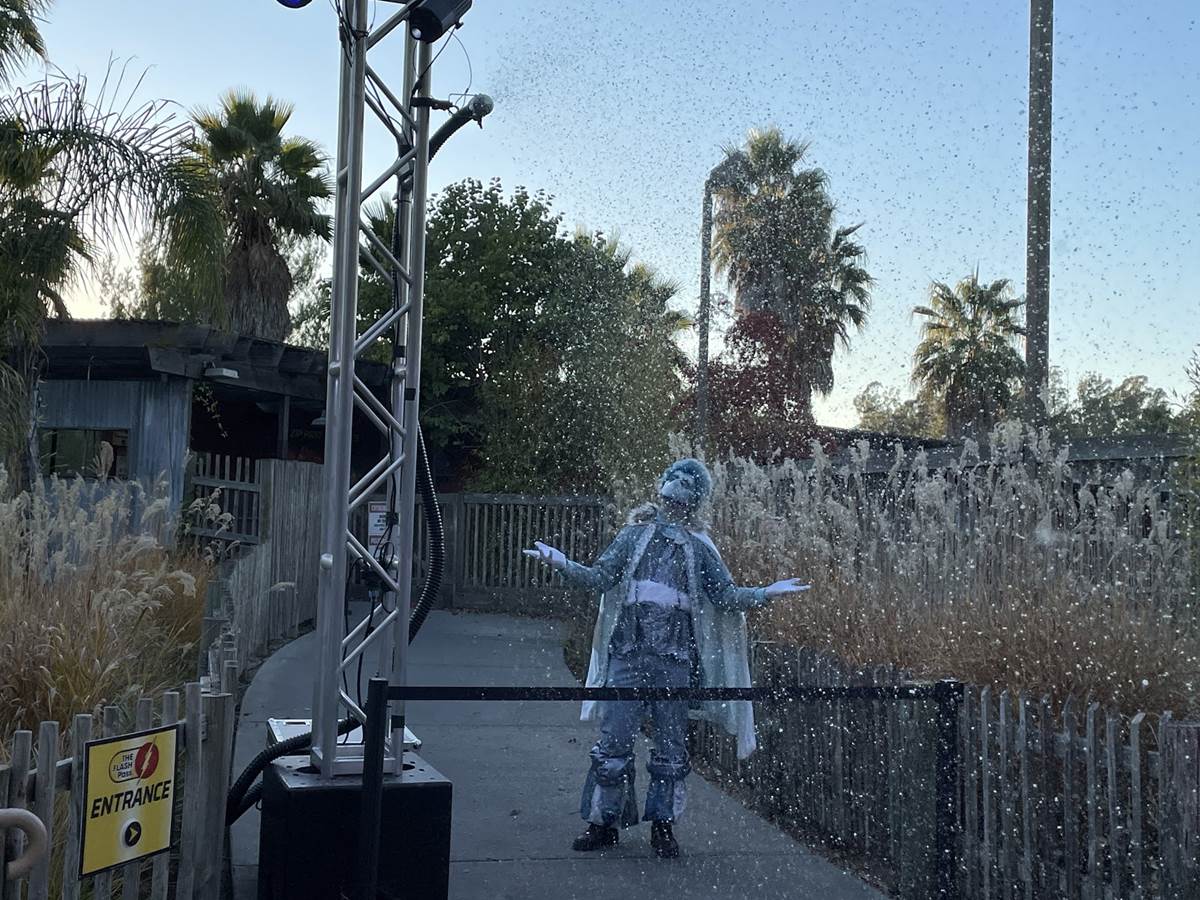 Other holiday characters can be found throughout the park. If you happen upon Jack Frost, you just might get a snow flurry! These types of photo ops have a marked spot where guests can stand to have their picture taken. We also saw characters like nutcrackers, a poinsettia princess, and peppermint elves throughout the park.