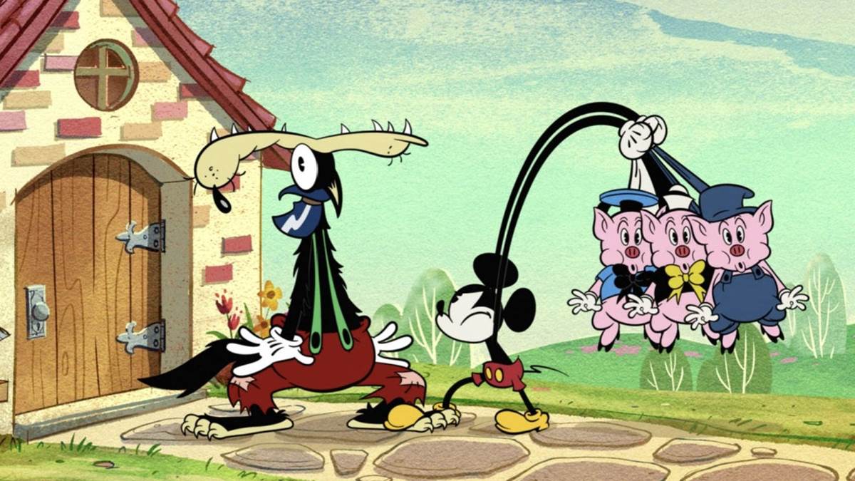 “Who’s afraid of the big bad wolf?” Everybody except Mickey. The villain from the classic short The Three Little Pigs and its protagonists enter Mickey’s world in this short, which starts with the Big Bad Wolf eating Fifer Pig, Fiddler Pig and Practical Pig. Oh no!