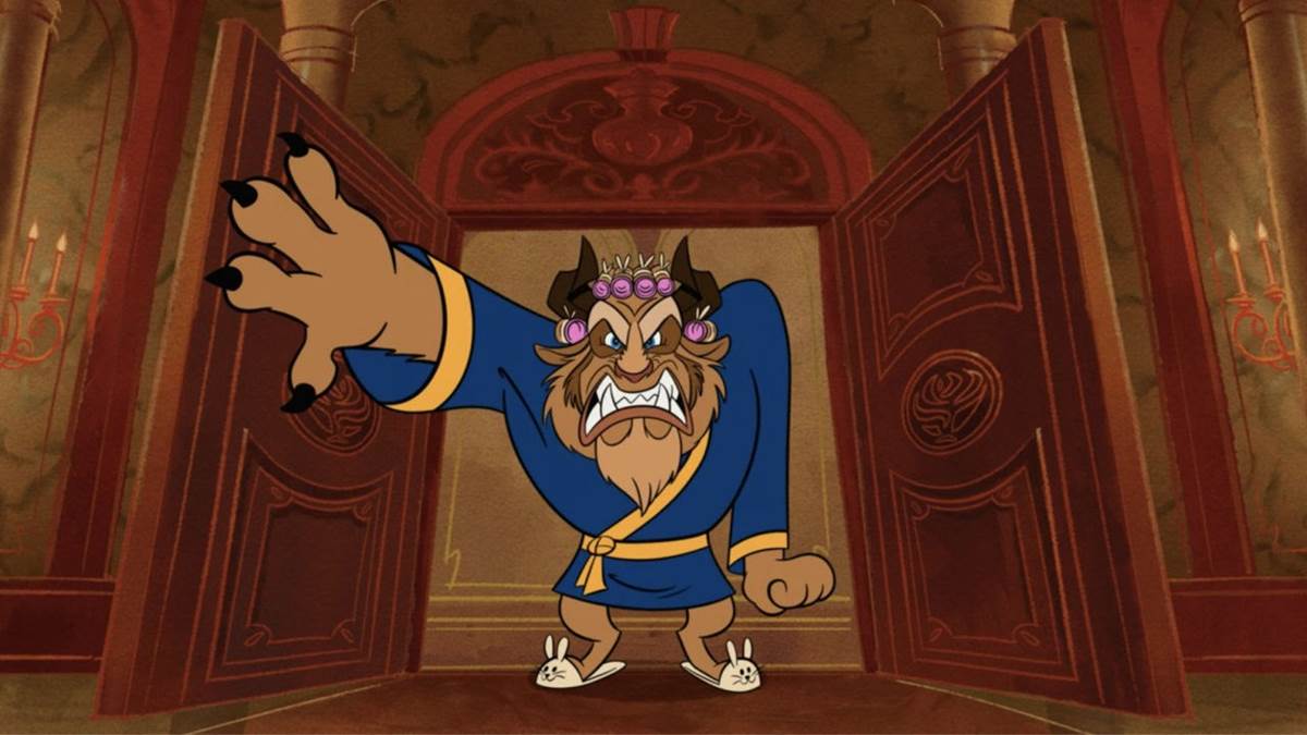 Oops! It looks like the master of the castle is none to pleased while getting ready for date night. This is Beast’s second appearance in the Mickey Mouse shorts, first appearing in the season 1 short The Adorable Couple.