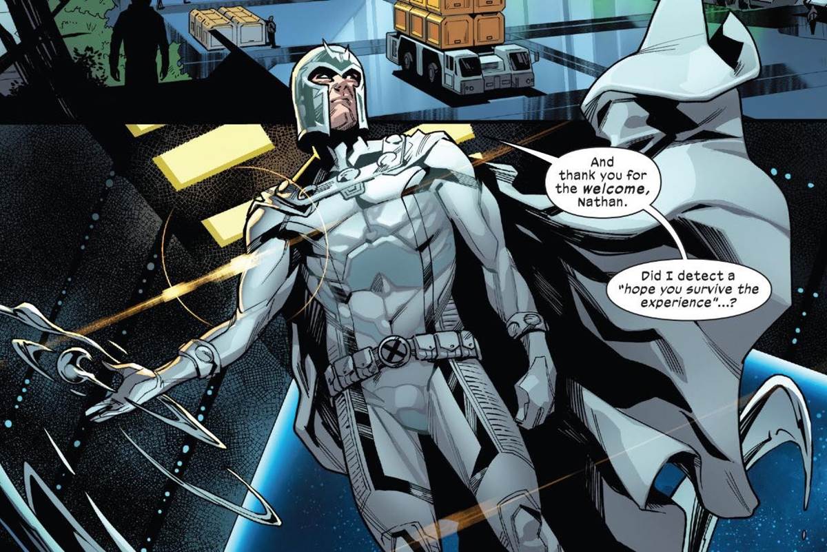 But what exactly is the plan for the newly reformed space force? A direct tie to Krakoa means Brand’s new team has an allegiance to a specific nation. In fact, Magneto visits the station to provide oversight from the Krakoan council. Brand sees a much bigger picture than just the future of Krakoa.
