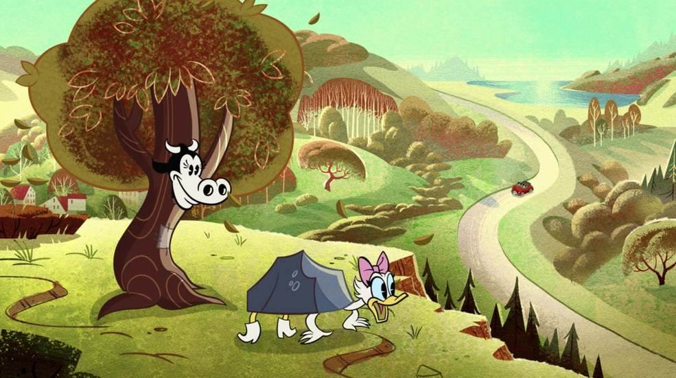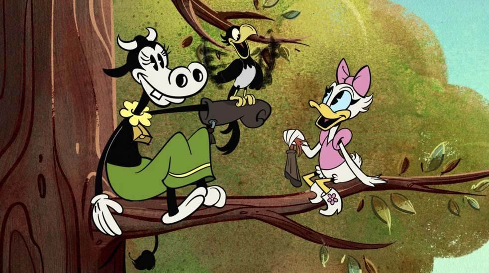 Minnie also has a park surprise for Mickey, with Clarabelle and Daisy hiding as a tree and a rock.