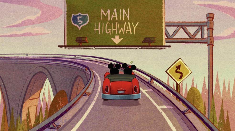 Mickey uses the highway to get to their dinner reservation. Oh, look, Interstate 5! It’s the main North/South highway on the West Coast that also happens to connect Disneyland with The Walt Disney Studios in Burbank.