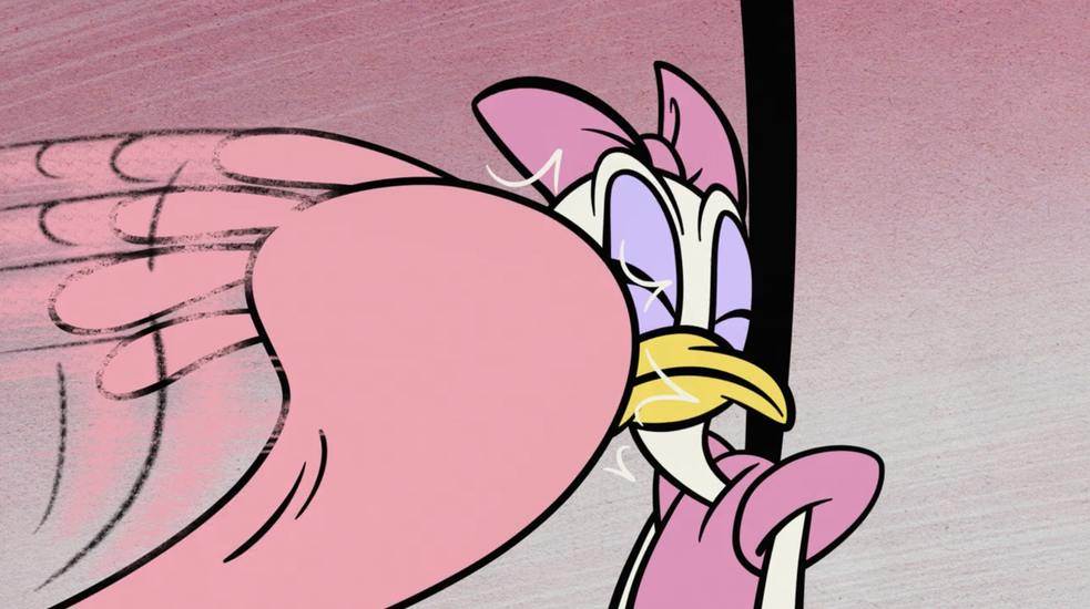 Donald, Goofy, Daisy and Clarabelle are still working on more surprises. When Daisy tells Clarabelle she quits, the cow slaps some sense into her.... WITH HER UDDERS!