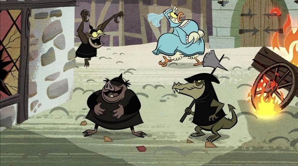They next come upon a village being ransacked by Maleficent’s goons where the Nottingham residents are fleeing for their lives.