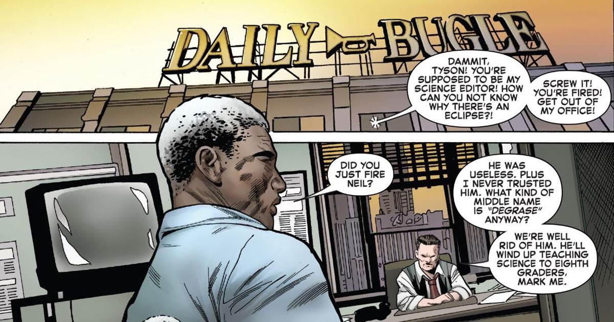 It would also make sense that Jonah would have no idea who Neil Degrasse Tyson is. Apparently, long before hosting Cosmos, Tyson was the science editor at The Daily Bugle. But even the great Neil Degrasse Tyson isn’t above being fired by JJJ.
