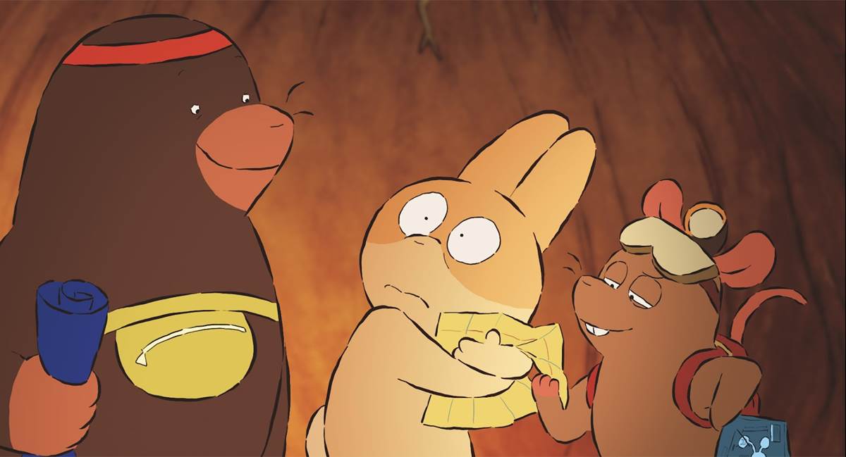 Not only is the main character a rabbit, but she also shares a character trait with Madeline. “I struggle with isolating myself because I’m a huge perfectionist, so I really don’t want anyone to see me until I can knock their socks off,” she revealed. “But, obviously, I’m a human being and I can’t knock socks off 24/7, so that meant I was spending a lot of time hiding myself, hiding my hurts and vulnerabilities from my own friends and family.” In the short, a rabbit is trying to build her burrow and having trouble, but she’s insecure about sharing her blueprints with animal neighbors who are willing to help.