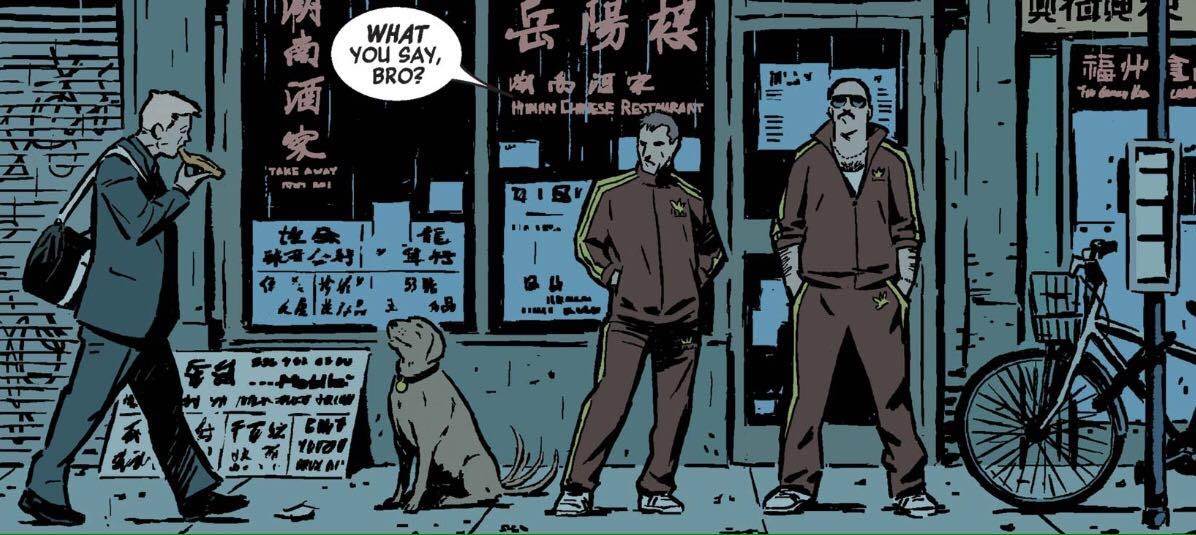 While Hawkeye often teams up with Earth’s Mightiest Heroes, he also has some time in between world-saving missions. During that time, he has some problems with a local gang called the Tracksuit Draculas. Yeah, they’re as ridiculous as they sound, bro.