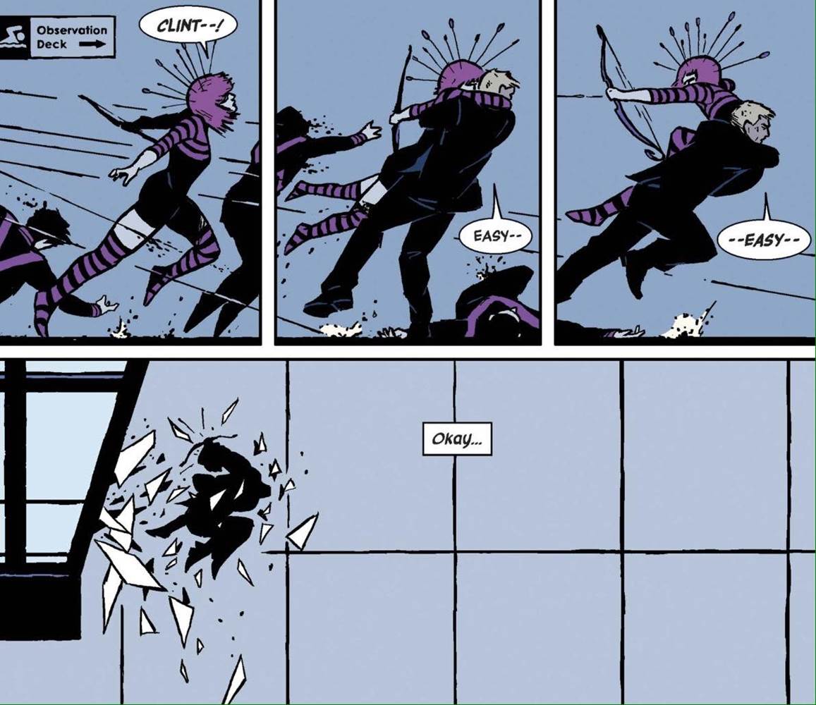 This is also one of the funniest Marvel Comics series you can find. There are so many one-line, one-panel and throwaway jokes in this series. From an ominous-yet-hilarious newspaper headline to Kate correcting Barton on what a cummerbund is, this series will have you laughing as much as any other.